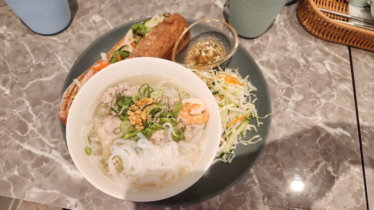 One of the highlights of the restaurant is their signature dishes, starting with the 生春巻き 1本, or fresh spring rolls. These light, flavorful rolls are the perfect appetizer, packed with fresh vegetables and perfectly seasoned proteins, all wrapped in delicate rice paper. If you’re looking for something a bit heartier, their バインミー (Bánh Mì) is a fan favorite. This Vietnamese-style sandwich features a crispy baguette stuffed with a variety of fillings, including marinated meats, vegetables, and a delicious spread, all combining for an irresistible crunch and flavor explosion.
